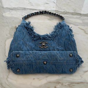 CHANEL DENIM FRINGE HOBO SHOULDER BAG