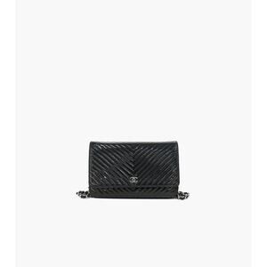 CHANEL Dark Green Patent Chevron WOC C-A32659