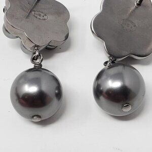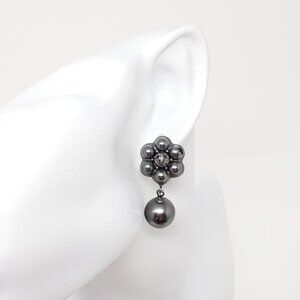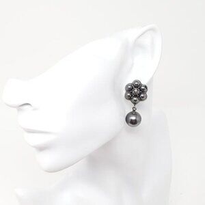 CHANEL Dark Grey CC Pearl Stud Earrings