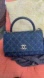 CHANEL Denim Quilted Small Coco Handle Flap Blue