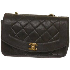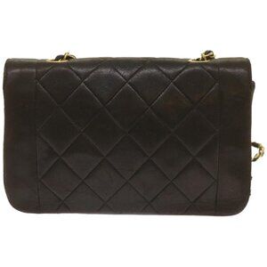 CHANEL Diana Matelasse Chain Shoulder Bag Leather Black CC Auth 66875