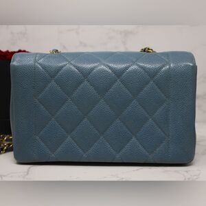 100% AUTHENTIC CHANEL Diana Small caviar leather CC Turnlock Quilted 22cm Baby Blue Chain bag