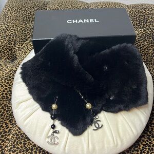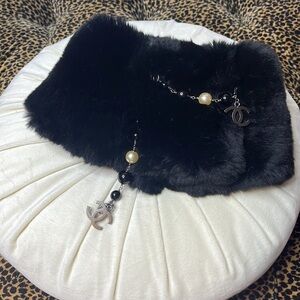 CHANEL Never Worn!!! Double C Pearl Charm Rabbit Scarf
