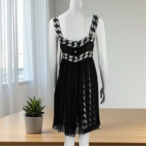 CHANEL Fall 2001 Black and White Pleated Silk Cocktail Dress