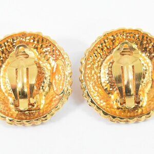 CHANEL Faux Pearl Gold Plated Round Earrings Clip