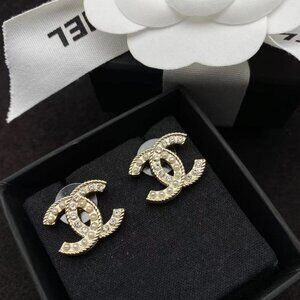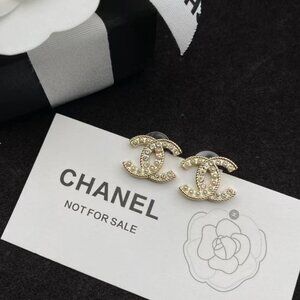 CHANEL Faux Pearl & Strass Gold CC Stud Earrings