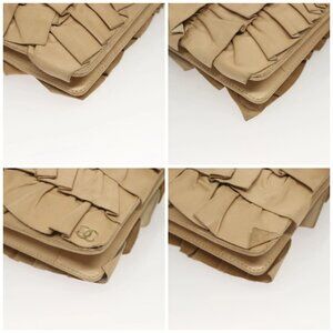 CHANEL Frill Chain Hand Bag Lamb Skin Beige Gold CC Auth yk18806