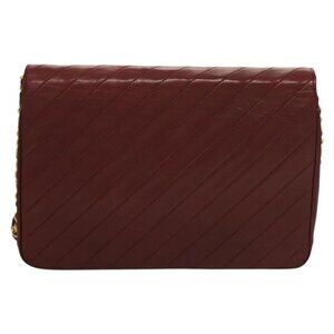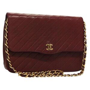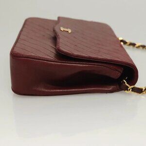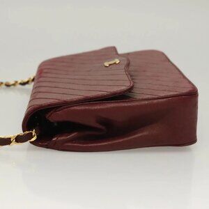 CHANEL Full Flap Chain Shoulder Bag Lamb Skin Bordeaux Gold CC Auth bs27626