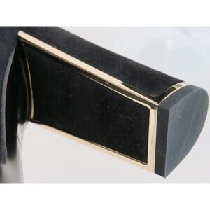G31660 BLACK SUEDE GOLD LOGO CHELSEA HEEL SHORT ANKLE BOOTIES PUMPS