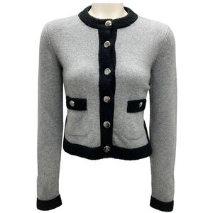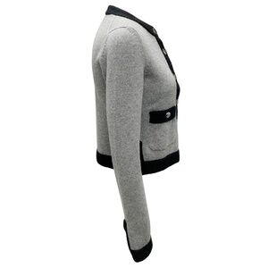 Chanel Grey / Black CC Logo Buttoned Cashmere Knit Cardigan Sweater