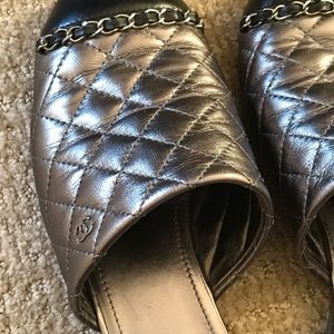 CHANEL GREY METALLIC MULES