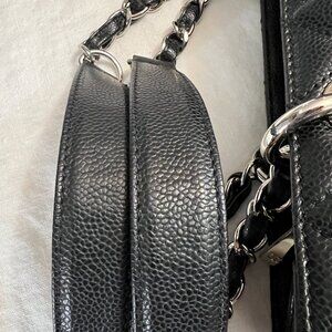 CHANEL GST Quilted Caviar Leather Tote Black Chain Silver HW Italy Auth