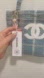 Stylish CHANEL Tote with a pink flower and gold zipper pull. Features iconic logo. Ideal for accessorizing bags.