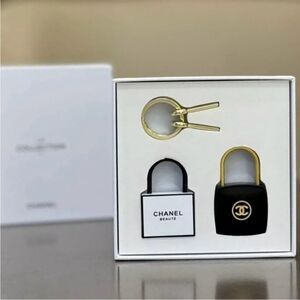 Brand new beautiful Chanel padlock lock and key set is from Chanel Beauty. The locks can be used as bag charms or put on a chain to make two necklaces!