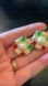 Gold earrings with pearl center. Red and green accents add vibrant detail. Perfect for elegance.
