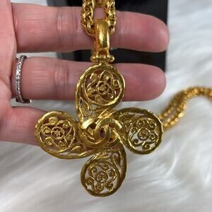 CHANEL Gold Plated CC Logos Clover Vintage Chain Necklace Pendant
