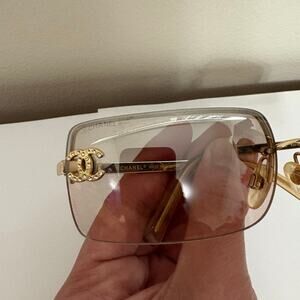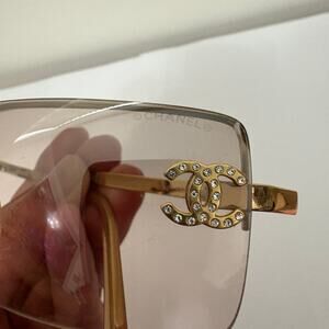 CHANEL Gold Rhinestone CC 4104-B sunglasses with case.