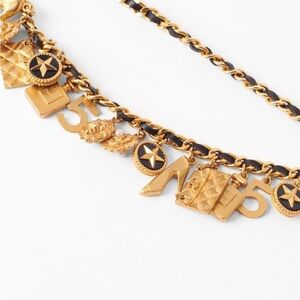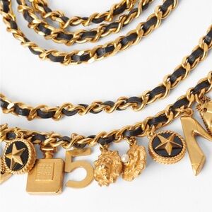 This vintage colletors Chanel Lucky Charm belt is from my personal collection. It has been well loved and cared for. Its considered one of Chanels most sought after belt. Its from the 90's. Its an investment piece. Its listed currently onlinebfor 7400.00. I will miss it. It can be worn as belt or necklace. It has all the favorite chanel marked charms. You will not regret this gorgeous investment inheritance piece of chanel history. Authenticity guaranteed
