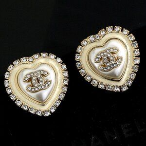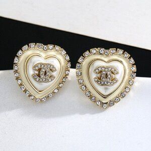 Romantic and sparkly! These Chanel CC heart earrings feature shimmering crystals and a soft pearl-like center ✨ Perfect for date night or everyday glam. Comes with box 📦 Ships next day – from a smoke-free home.