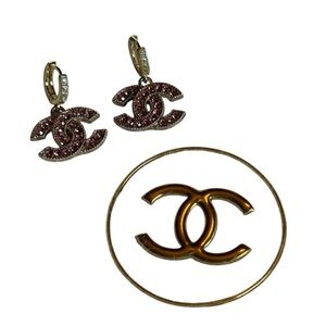 Stunning CHANEL earrings with sparkling pink crystals. Features iconic CC logo design.