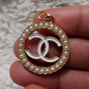 CHANEL Gold and White Pearl Zip Puller Pendant