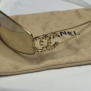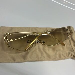 Stylish CHANEL sunglasses with a gold-tinted frame. Perfect for a sophisticated look.