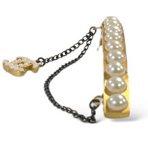 CHANEL Gold-Tone Vintage CC Logo & Faux Pearl French Snap Clip Barrette