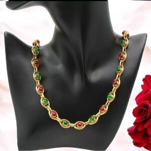 CHANEL Gold-tone Gripoix Chain Long Necklace Vintage