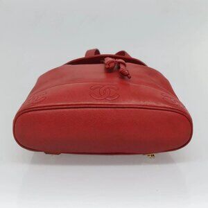 CHANEL Grained Calf Skin Backpack Grained Calf Skin Red Gold CC Auth