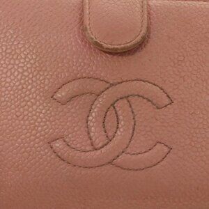 CHANEL Grained Calf Skin COCO Mark Bifold Wallet Pink Gold CC Auth am8671