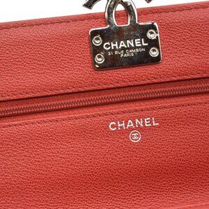 CHANEL Grained Calfskin Quilted CC Box Wallet On Chain WOC Red 27*
