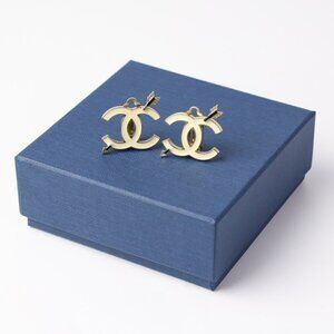 CHANEL Green Logo Earrings