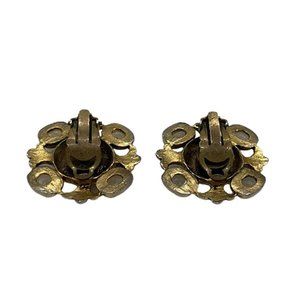 CHANEL - Gripoix Red White Clip On Gold Tone Earrings 70s-80' Vintage