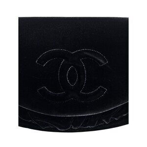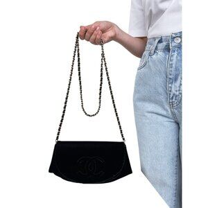 CHANEL Half Moon Black Velvet Leather Wallet on Chain Clutch Shoulder Bag Auth