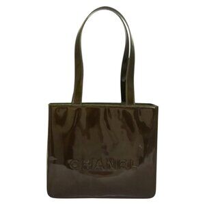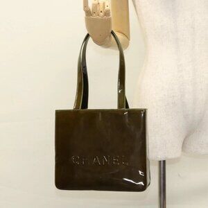 CHANEL Hand Bag Enamel Khaki CC Auth