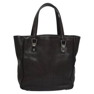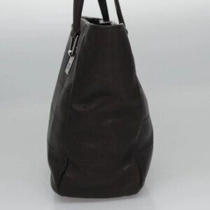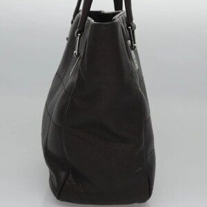 CHANEL Hand Bag Grained Calf Skin Dark Brown Silver CC