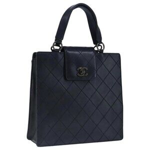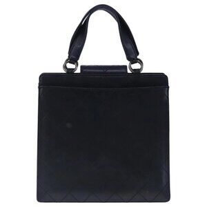 CHANEL Hand Bag Lamb Skin Black CC Auth PP003
