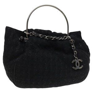 CHANEL Hand Bag Tweed Black Silver CC Auth