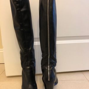 Calfskin Black, Luxuriously elegant, amazingly comfortable 4" stacked heel. Like new!