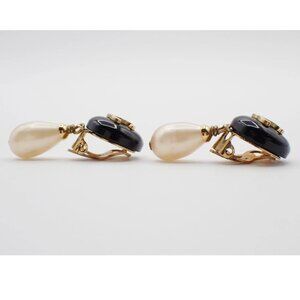 CHANEL Imitation Pearl Drop Earrings 94A Clip-On Black White GHW Vintage