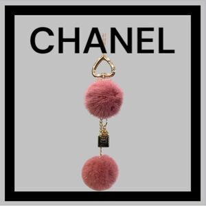 CHANEL KEYCHAIN KEY CHARM FOX FUR PUFFY BEAUTY CHARM GOLD TONE