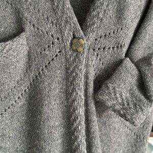 CHANEL KNEE LENGTH GRAY KNIT SWEATER/COAT