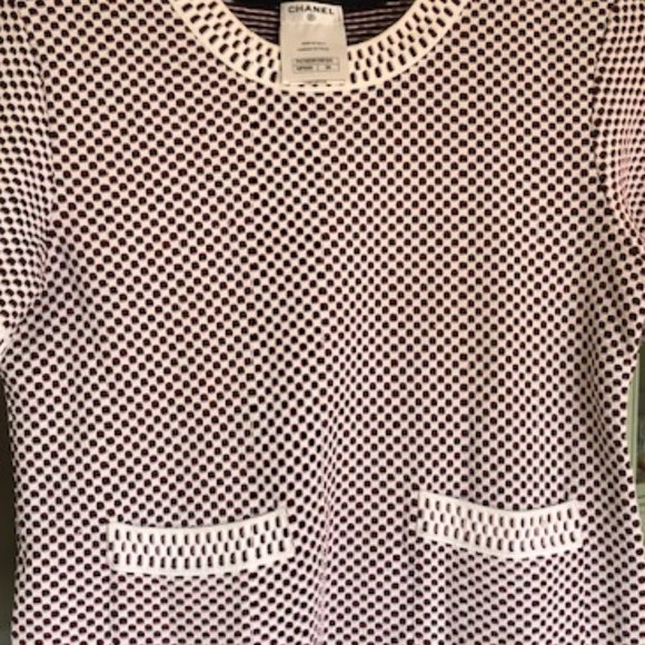CHANEL Knit Short Sleeve Top, Medium, Size 38, Color: red, black, white