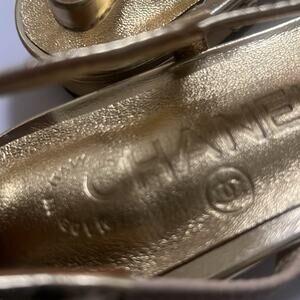 CHANEL LAMINATED LAMBSKIN GROSGRAIN CAP TOE CC SLINGBACK FLATS SZ 37