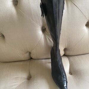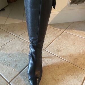 CHANEL LEATHER CAMELLIA FLOWER KNEE-HIGH BOOT. 36.5. GREAT CONDITION.