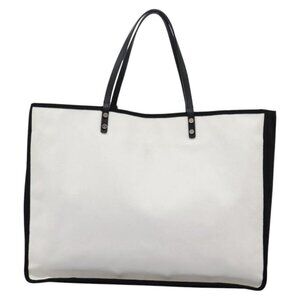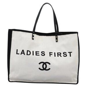 CHANEL Ladies First Tote Bag Canvas Black White CC Auth
