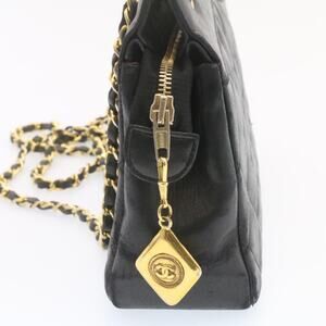 CHANEL Lamb Skin Matelasse Chain Shoulder Bag Black CC