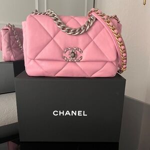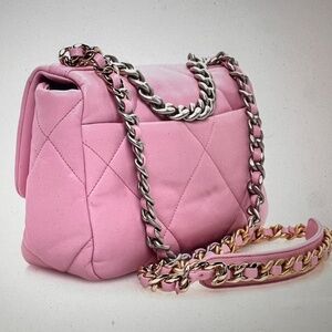 Brand New 22K Pink Lambskin CHANEL 19 Small Flap Bag with Silver and Ruthenium Hardware