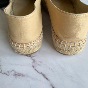 CHANEL Lambskin Beige and Black Gold Camellia Studded Espadrilles Size EU 37.