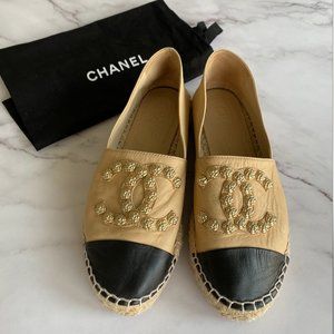 CHANEL Lambskin Camellia Studded Espadrilles EU 37